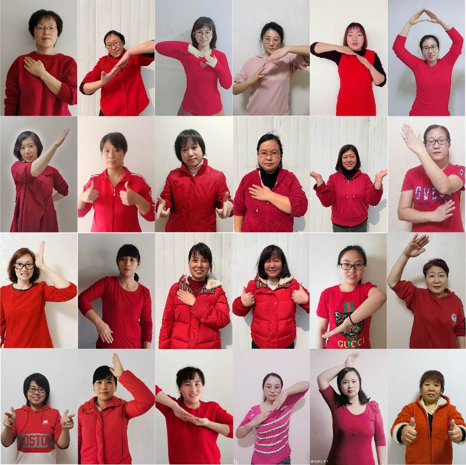 河北新大地的女員工,用手語動作把《聽我說謝謝你》表達出來。感謝感謝她們無畏戰(zhàn)斗、無私奉獻。