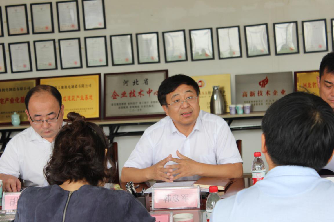 中國國際貿(mào)易促進委員會建筑行業(yè)分會集成建筑委員會、萬華節(jié)能科技集團股份有限公司、北京浩石集成房屋有限公司、恒森建設集團有限公司、揚州泰利特種裝備有限公司、廊坊中建機械有限公司、大禾眾邦(廈門)智能科技股份有限公司、廈門麥思??萍加邢薰?、合肥國瑞集成建筑科技有限公司、安健能節(jié)能科技有限公司等會員代表專程來到河北新大地進行交流溝通。